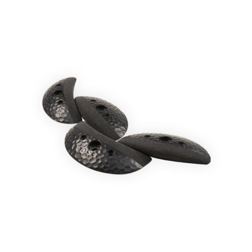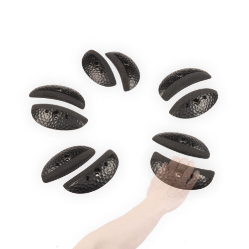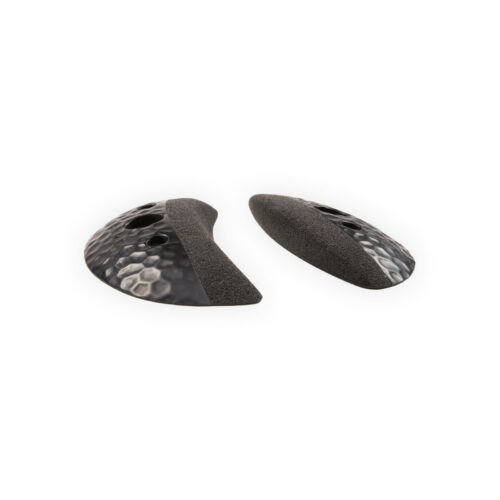 These 10 Dragonskin doubletexture crimps offer you a lot of possibilities due to their modular slidable design. With their additional screw-on holes you can also set with these holds outside the M10 Hole pattern. Because of this you can also “close” crimps or create slots. Further you can also use them to create unique pinchens if you place them agains each other.