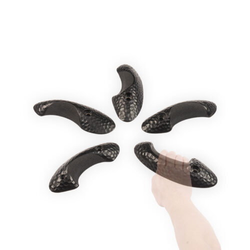 These five doubletexture Crimps are very comfortable and range from slopey to 90°. Thanks to the unique dragonskin Double Texture these holds are directional and give you the opportunity to set selective moves.