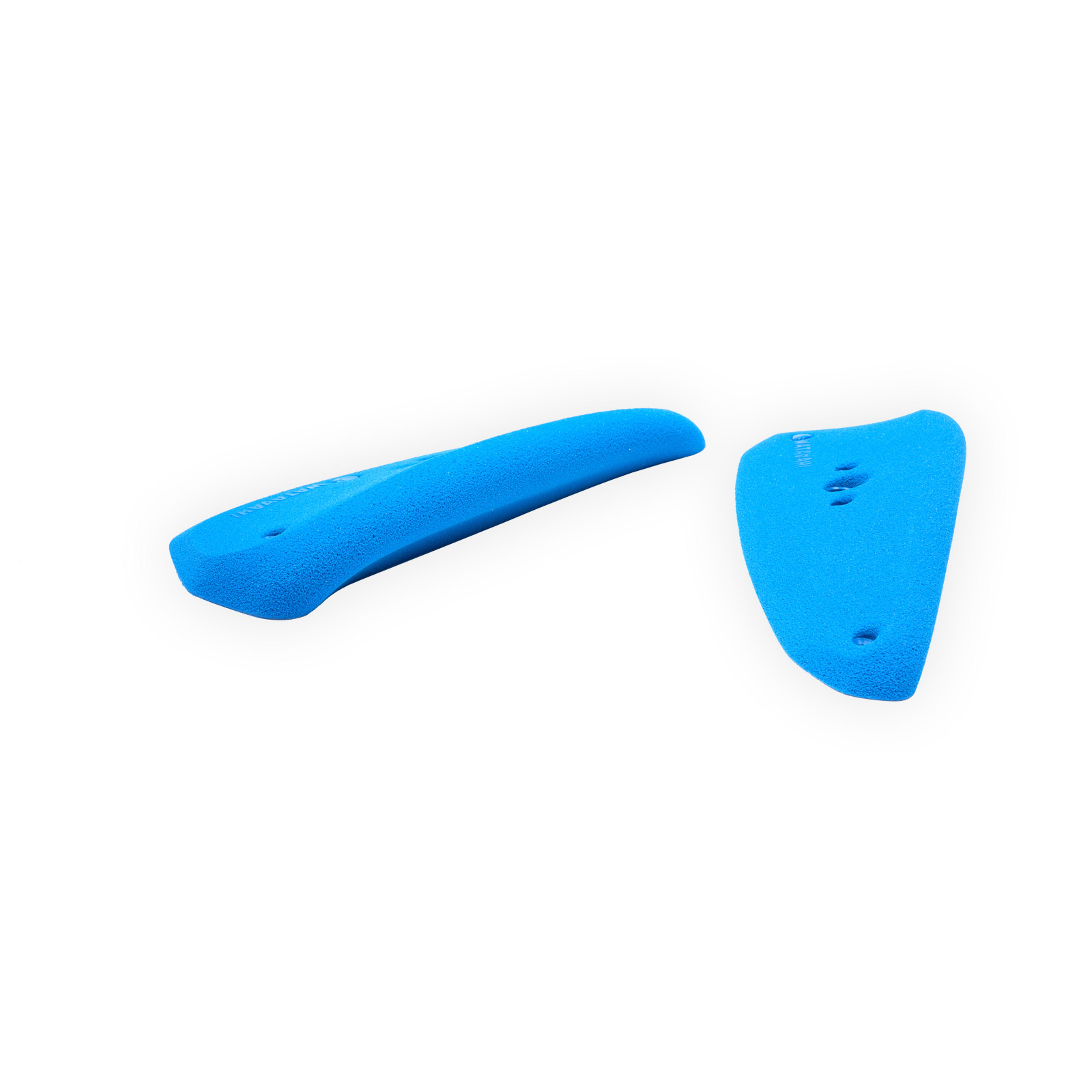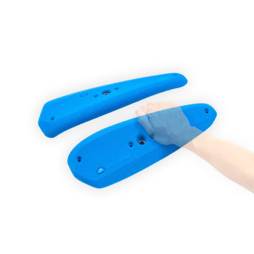 Zwei symmetrische, stark hinterschnittene Riesenhenkel welche sich dank zusätzlicher Spaxbohrungen auch außerhalb des Lochmusters an der Kletterwand befestigen lassen.