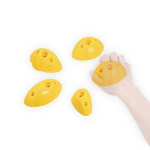Diese fünf Klettergriffe sind etwas ganz Geschmeidiges. Durch Ihre Kombination von glatter Fläche und ergonomischem Shape sind sie kleine, hinterhältige Handschmeichler. Durch die zusätzlichen Spaxlöcher lassen sich diese Griffe auch außerhalb des M10 Lochrasters verschrauben.